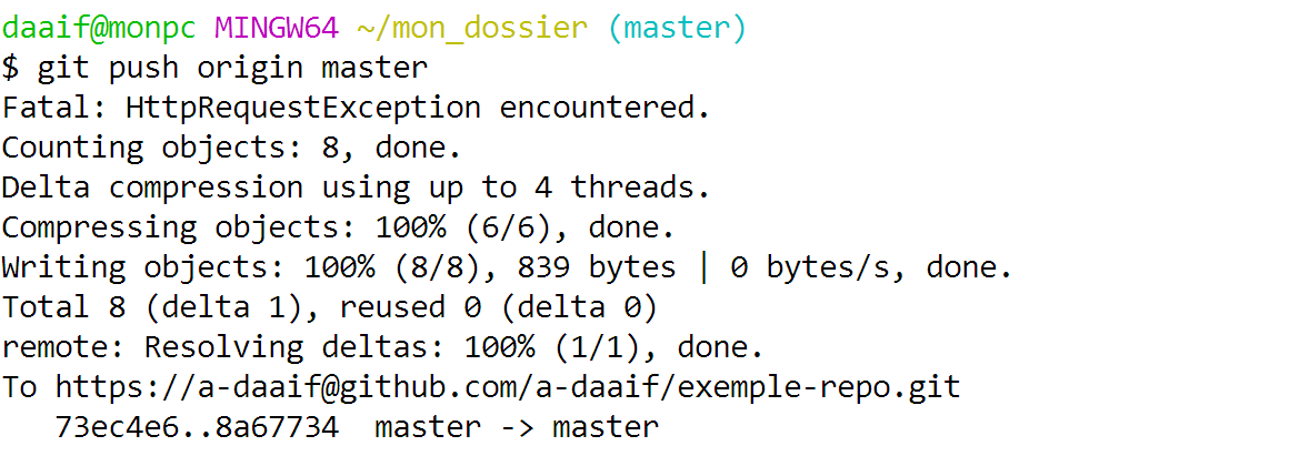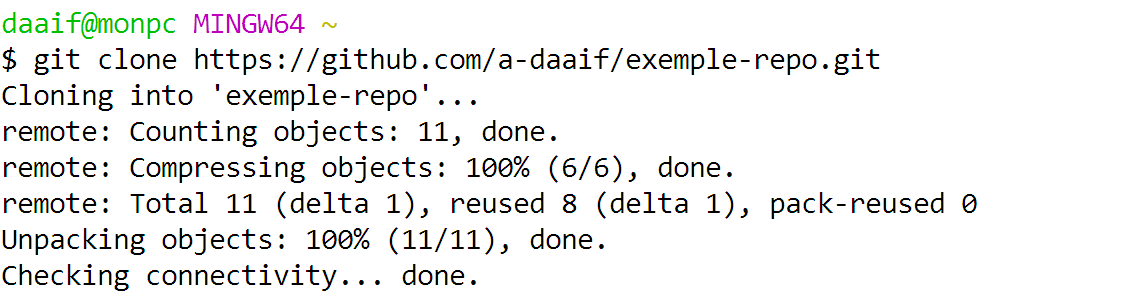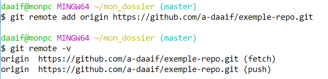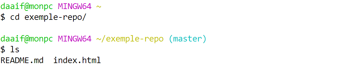 $ cd mon_dossier # Entrer dans le répertoire mon_dossier